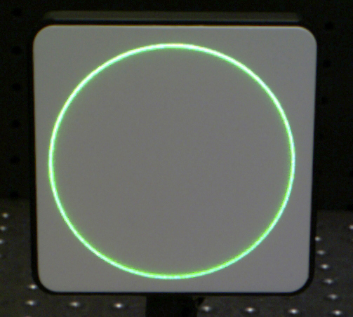 By focusing a light source in a line along its optical axis, an axicon creates an approximation of a Bessel beam. Although the ring diameter increases and decreases proportionally to the distance between the axicon and the image, the ring thickness remains the same. Axicons are ideal for measurement and alignment, research, and medical applications requiring a ring-shaped laser output.