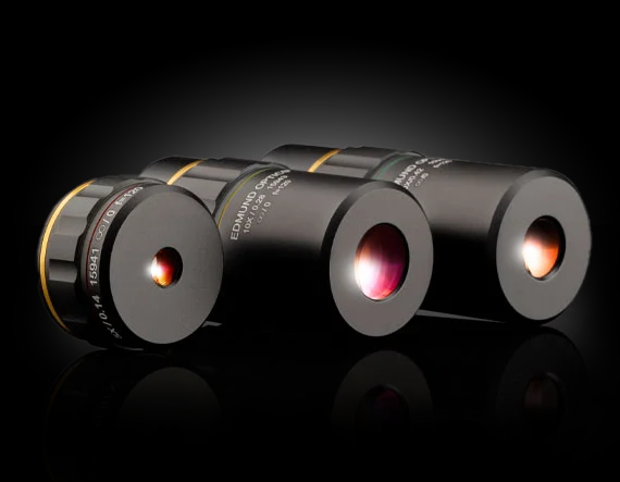 TECHSPEC® 120i Plan APO Infinity Corrected Objectives are infinite conjugate microscope objectives designed to reduce the overall weight and size of an imaging system while maintaining optical performance. These objectives allow for a reduction in overall system length, by eliminating the requirement for the objectives to be parfocal to each other. TECHSPEC® 120i Plan APO Infinity Corrected Objectives feature c-mount threading to provide easy integration into a wide range of machine vision and life science systems. These objectives are ideal for biomedical and machine vision applications such as microscopy, flow cytometry, pharmaceutical inspection, and assembly line or fault inspection.