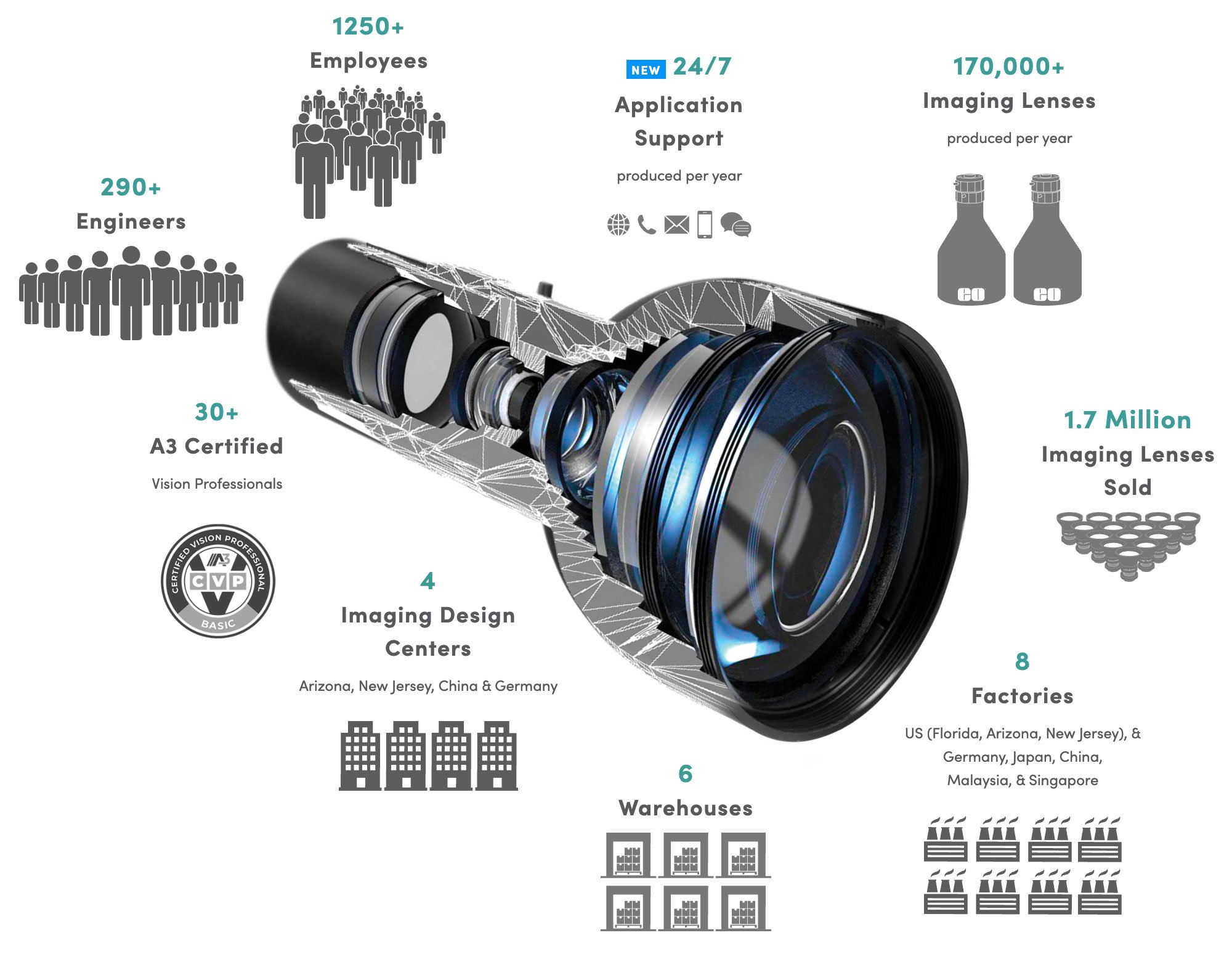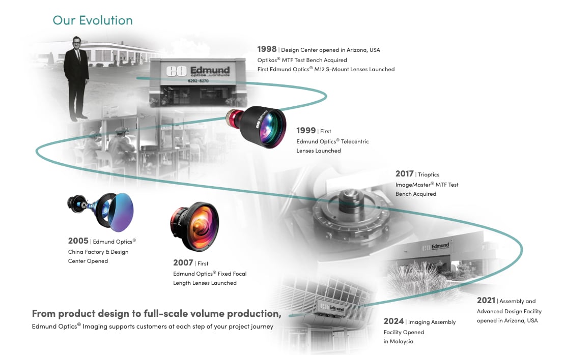 Edmund Optics® manufactures imaging lenses for volume production, tailoring designs for both evolving sensor technologies and ever-shifting application spaces.