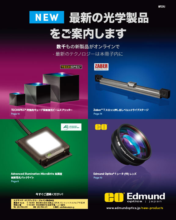 Edmund Opticsの最新かつ人気の高い製品のセレクションです。お客様のアプリケーションニーズを満たす、最新のテクノロジーを用いてデザインされたオプティクス、イメージング、およびオプトメカニカル部品をご覧ください。