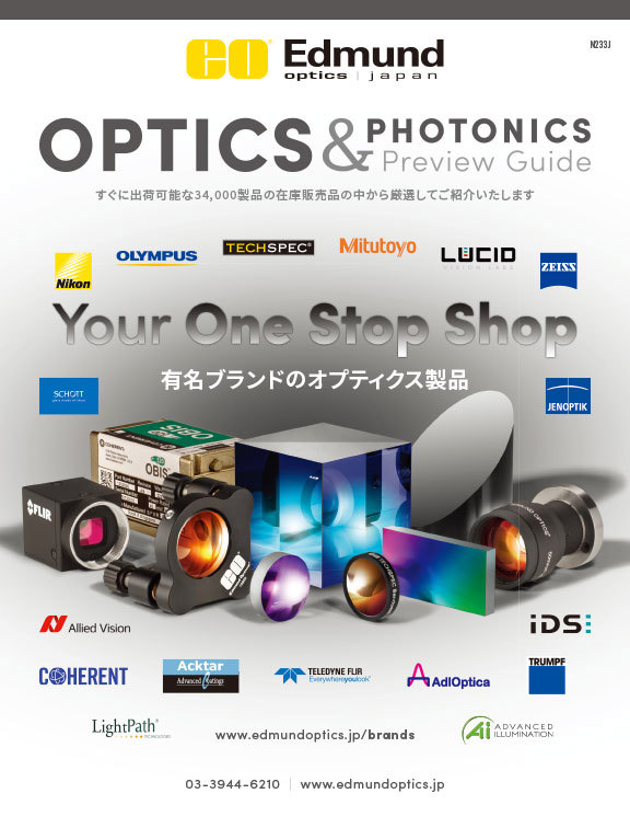 全196ページの本カタログは、イメージングやマシンビジョン、及び検査に携わる当社の顧客に向けて特別にデザインされました。当社が在庫販売する1,700品を超えるイメージングレンズ、カメラ、フィルター、照明機器などを網羅します。イメージング性能の最適化をサポートする40ページ以上の技術コンテンツも用意。