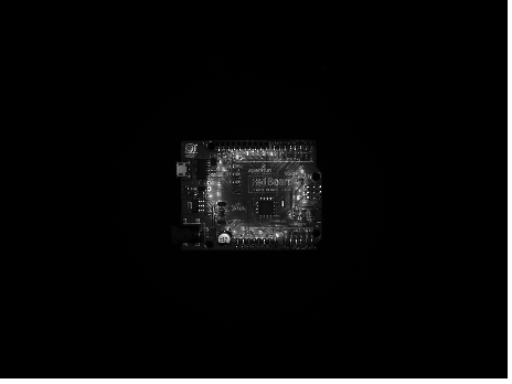 The left column of Table 1 shows images that were captured using the 6mm C Series Fixed Focal Length Lens at a working distance of 200mm. When imaging reflective objects like the printed circuit board (PCB, Panel E) and the medicine vial (Panel A), a ring of LEDs can be observed on the surface of these objects. This glare could interfere with the image processing of the system. For the cap (Panel B), shipping label (Panel C), and the metal gear (Panel D), the uniform light is great for illuminating the surfaces of these less reflective objects. The images in the right column of Table 1 were captured with the 25mm C Series Fixed Focal Length Lens at a working distance of 750mm to maintain the same magnification and field of view of the 6mm C Series Fixed Focal Length Lens. Glare from the ring light LEDs on the PCB surface and the medicine vial can still be seen, but since the working distance is longer for the 25mm C Series Fixed Focal Length Lens the glare is not as evident. This demonstrates the importance of not only defining the illumination geometry, but also considering how working distance and field of view affect the illumination uniformity of the imaging system.