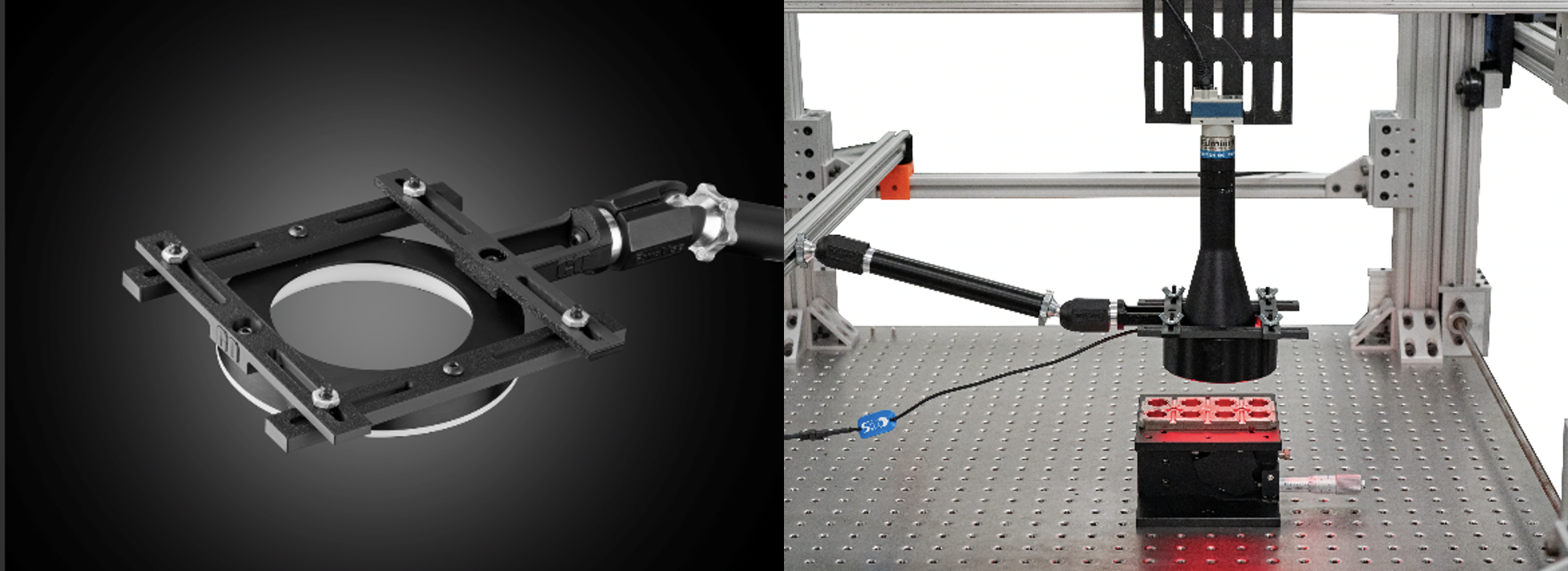 When designing specific mounts for the wide variety of lighting geometries, the biggest requirement in the design process was versatility. Edmund Optics® wanted to design a mount that can be used with most lights that Edmund Optics® offers. With this in mind, the design team also ensured not to compromise mechanical stability or adjustability within the setup. As a result, a rigid, yet versatile illumination mounting system was developed that covers multiple geometries and sizes of lights utilizing both 3D printed STL files created in CAD and Articulating Arm Systems offered by Edmund Optics®.