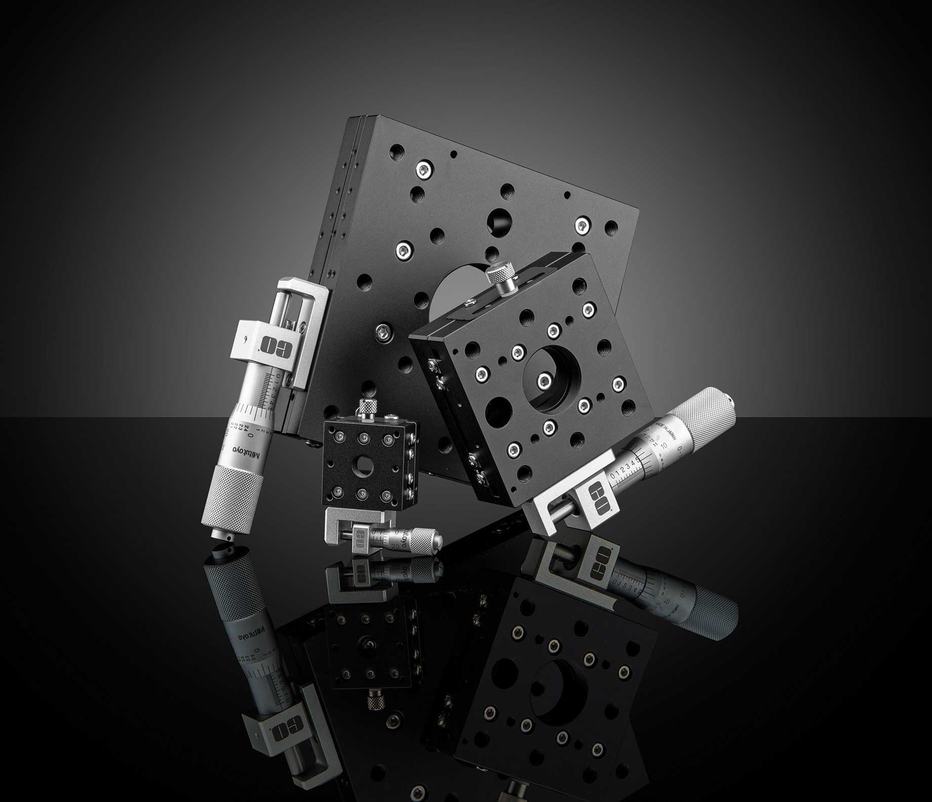 Precision stages provide fine alignment capabilities, allowing precise positioning for a wide range of optical applications. Depending on your setup requirements, you can choose from two adjustment options - manual translation stages and motorized translation stages. Manual stages typically use micrometer screws to enable fine linear positioning, while motorized stages can be connected to a computer’s USB or RS-232 port and are controlled via software.