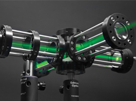 The TECHSPEC® Optical Cage System is an ideal solution for creating a Michelson Interferometer. Because the cage system rods support the basic structure, the only additional alignment needed is correcting the tip-tilt of the optics, and adjusting the difference in distance between the two mirrors and the beamsplitter. The TECHSPEC® Optical Cage System allows for the easy adjustment of all parameters, whether it is the use of a linear micrometer for adjusting the path length difference, or a three knob tip-tilt mount to align the mirrors. Building a similar interferometer from standard optical mounting components would be cumbersome and require significantly more parts. The TECHSPEC® Optical Cage System offers a compact, user friendly solution.