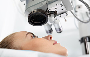 Laser eye surgery intended to correct human vision. LASIK is a refractive surgery to correct myopia and astigmatism by using a laser to reshape the cornea of the eye, therefore improving visual acuity.