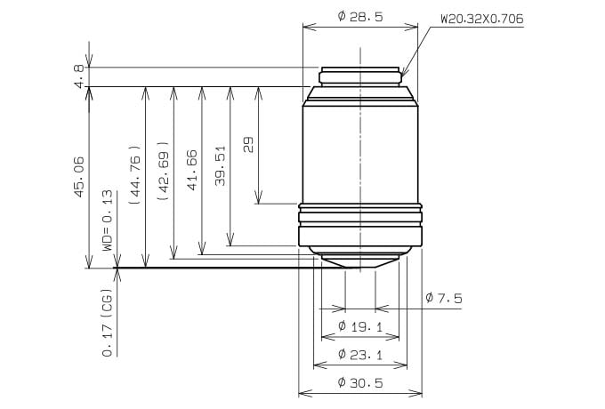 | Olympus UPLXAPO 4X Objective | #14-905 | 31.89 | - | - | 15.4 | 15.4 | 28 | 4.7 | 13.0 |